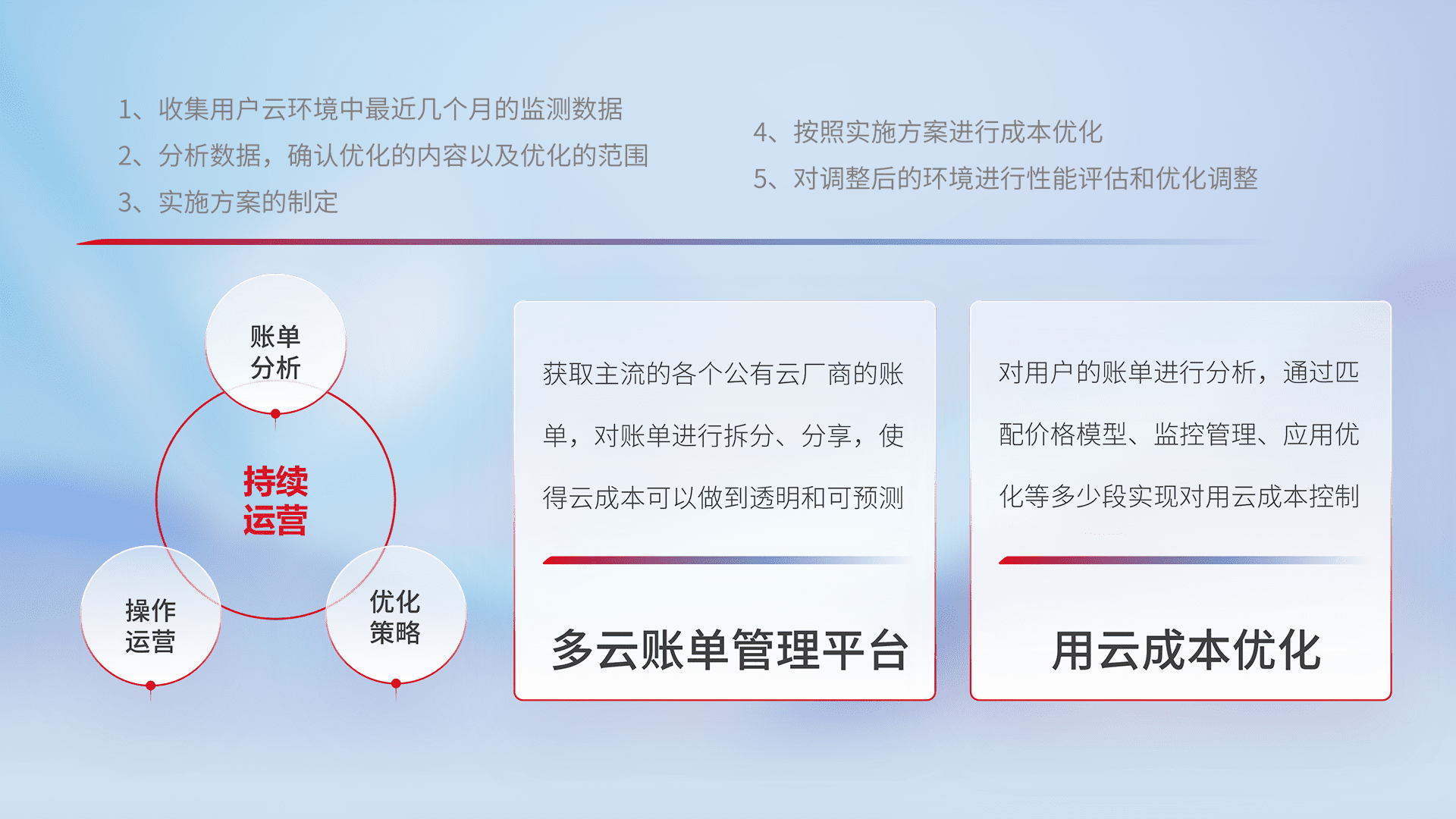 监控业务系统资源开销,,对资源的消耗精确计量,,,,实现费用的透明化管理,,,不断提升资源使用率,,,,调整资源购买方式,,,,降低资源费用成本,,用云成本可预测、、、、用云费用可优化,,,,云资源配额有据可依。。